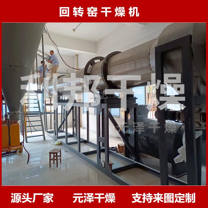 主要由供熱源、上料機、進料機、回轉(zhuǎn)滾筒、出料機、引風(fēng)機、卸料器和配電柜構(gòu)成;脫水后的濕物料從干燥機一端投入后,在內(nèi)筒均布的抄板器翻動下,物料在干燥器內(nèi)均勻分布與分散,并與并流(逆流)的熱空氣充分接觸,加快了干燥傳熱,傳質(zhì)推動力。在干燥過程中,物料在帶有傾斜度的抄板和熱氣流的作用下,可調(diào)控地運動至干燥機另一段星形卸料閥排出成品。